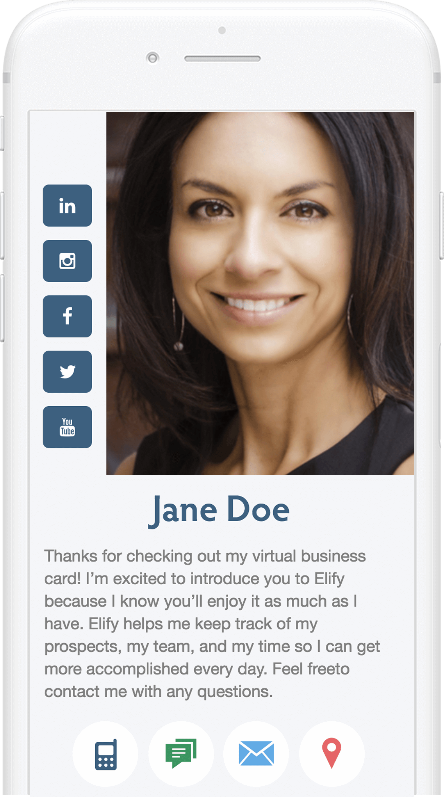 Increase your prospects, improve your follow up, and close more sales with Shuffle, Elify’s new mobile networking app! Digitally share your info with a simple swipe of your finger so your card doesn’t get lost in the stack.